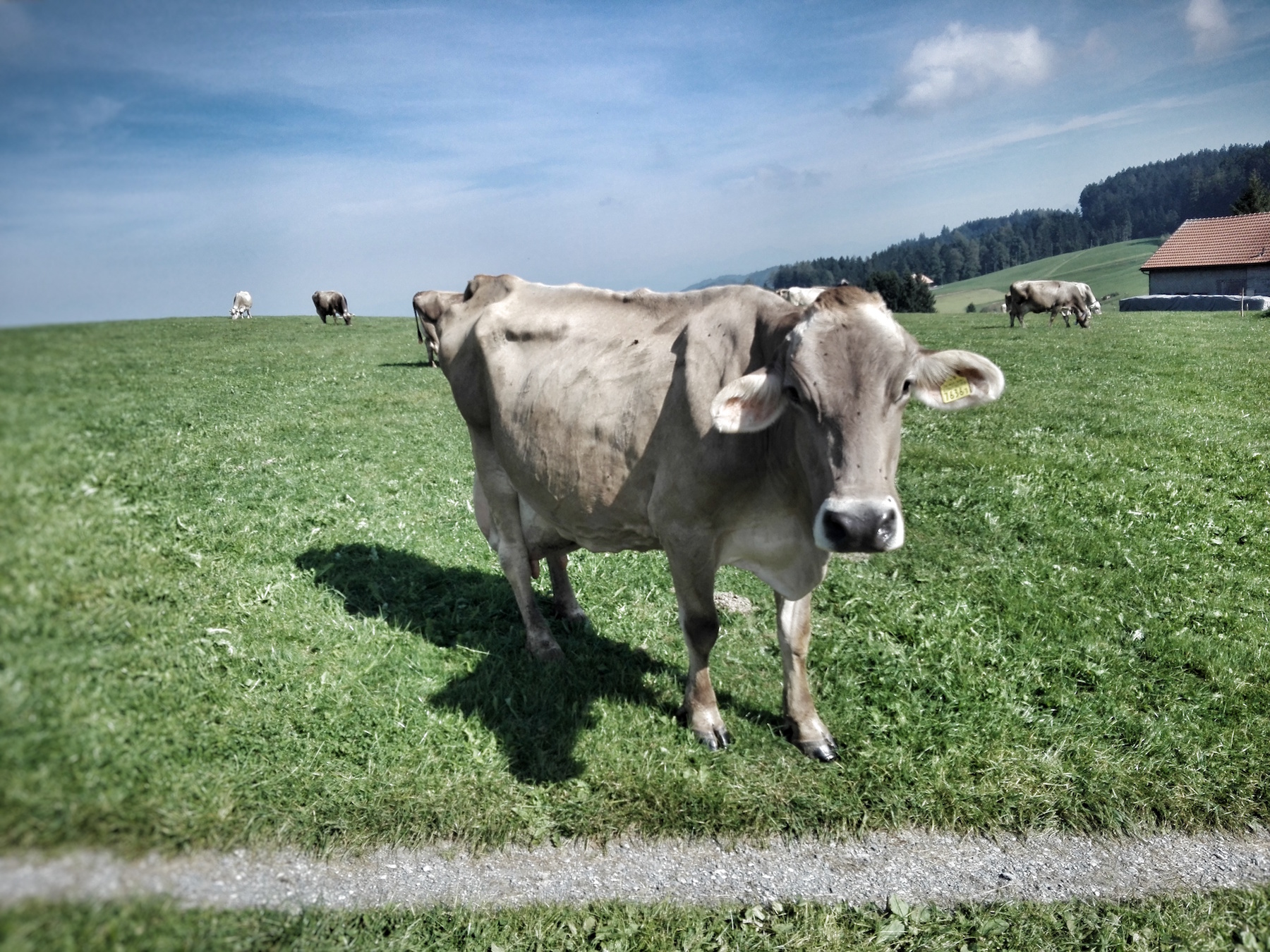 Mich lassen Kühe irgendwie ein Gefühl von Kindheit verspüren… Keine Ahnung, ob es mit Erinnerungen oder mit dem Kleinsein zu tun hat… Jedenfalls ist es ein schönes, dieses Gefühl…