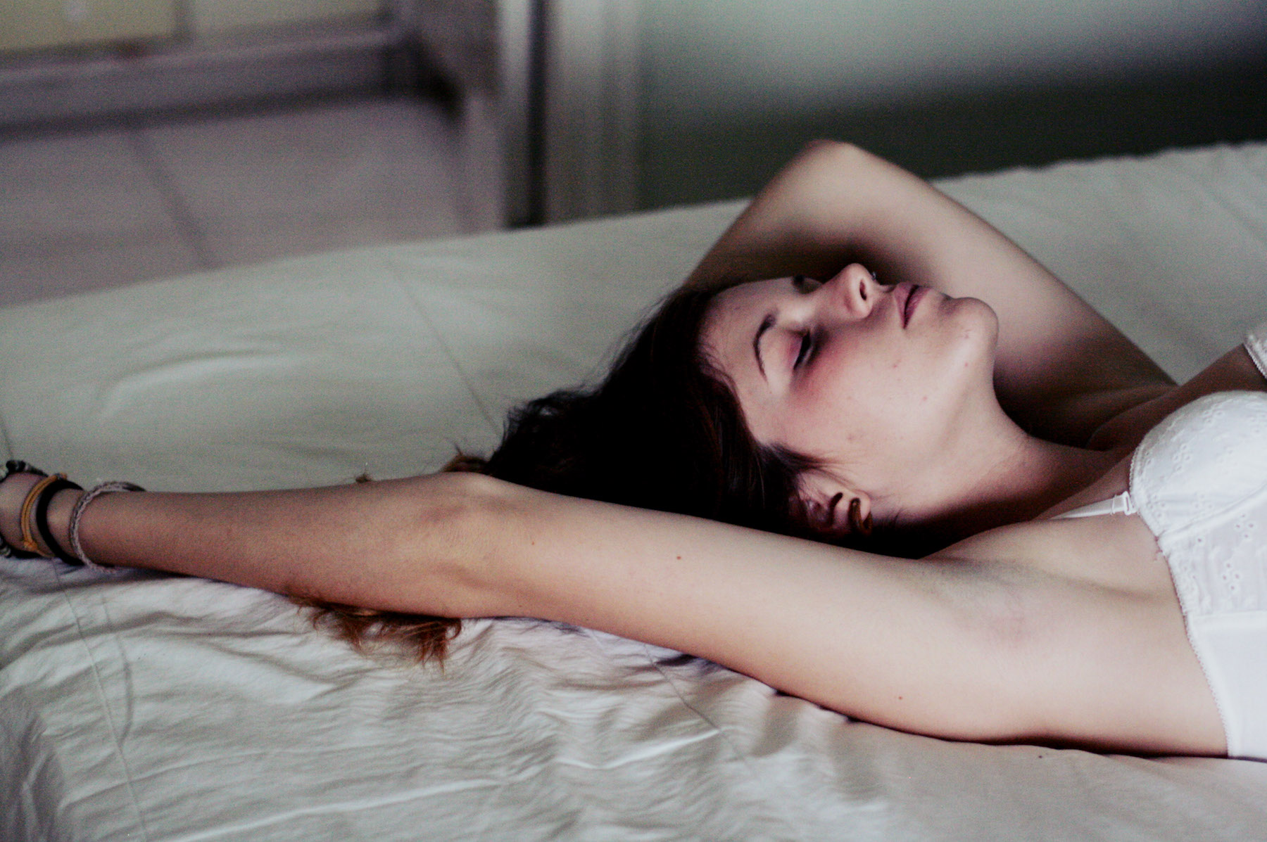 Eine Zeit lang bleibt alles still. Dann beginnt es wieder. Das dumpfe Hämmern ist gleichmäßig und eintönig, ein starrer Rhythmus. Sie betrachtet einen kleinen Fleck an der Decke. Er war schon immer da, der Fleck, so scheint es zumindest; sie kann sich nicht erinnern, dass da kein Fleck gewesen wäre. Der Fleck ist essenziell, und wäre er nicht da, würde etwas fehlen. Erneut hört das Hämmern kurz auf. Sie atmet ein, atmet aus, es klingt unerwartet laut in der plötzlichen Stille. Schließlich setzt das Hämmern wieder ein.