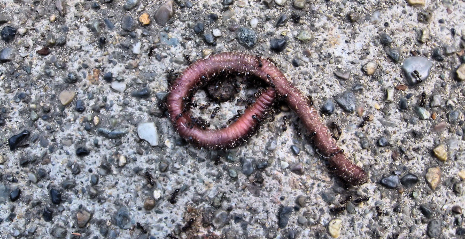 Nach dem Regen die Würmer auf dem Asphalt, ihr seltsames Fortbewegen, diese Wellen, die durch den langen Körper fließen, und später werden einige von diesen Regenwürmern vertrocknen, werden spröde und hart werden und sterben und dann wie verkohlte Gummischnüre auf dem Boden liegen, übersät von Ameisen, aber jetzt, jetzt leben sie noch, obwohl man nicht weiß, wie sich das Leben für Regenwürmer anfühlt, und dann die Schnecken, auf den Gehwegen, die dicken braunen Nacktschnecken, und man gibt ja acht, man passt auf, aber dennoch tritt man auf eine dieser Schnecken, das ganze Gewicht des eigenen Körpers steckt in einem Schuh, und dieser Schuh zerquetscht die Schnecke, und als man es bemerkt, stöhnt man kurz auf, man hadert mit den Geschehnissen, aber nicht in erster Linie, weil man dieses Tier getötet hat, sondern weil nun eine zähe und schleimige Masse an der Schuhsohle klebt, und was ist denn schrecklicher, fragt man sich, verdammte Ambivalenz, und man denkt an Momente, in denen man in einen Stau geriet und dann langsam an einem Verkehrsunfall vorüberfuhr, in Schritttempo, und wenn man dann das Unfallfahrzeug sah, machte es einen Unterschied, ob es ein Familienauto war oder eine jener tiefergelegten Machomaschinen mit überdimensionalem Heckspoiler, je grösser der Heckspoiler, desto grösser der Ärger, aber selbst bei einem alten Volkswagen Passat Kombi war er da, der Ärger, dieser absurde Ärger darüber, dass man in den Stau geraten war, dass man Zeit verloren hatte und sich verspäten würde, selbst dann, wenn man nirgends hinmusste, und der Ärger, er war grösser als das Mitleid mit den Menschen, die in den Unfall involviert waren, außer wenn Kinder betroffen waren, Kinder sind immer eine Ausnahme, aber sonst, eben, man ärgerte sich mehr als man litt, verdammte Ambivalenz, und dann die Ambulanz, und man ärgerte sich, und dann sah man ein Kind mit blutender Stirn, und man biss sich auf die Unterlippe, und während man versucht, die zerquetschte Schnecke von der Schuhsohle zu entfernen, fragt man sich, wer diese Schuhe hergestellt hat, in jener Fabrik in Thailand oder Vietnam oder Bangladesh, und man stellt sich vor, wie es wäre, wenn man diese Schuhe, oder irgendwelche Schuhe, ganz egal, Schuhe, die man nicht mehr trägt, wenn man also diese Schuhe bei einer jener Sammelstellen abgibt, die irgendwelche wohltätigen Organisationen beliefern, und die Schuhe dann über Umwege und nach vielen Monaten in Thailand landen, oder Vietnam, oder Bangladesh, und irgendwann dann genau jener Person übergeben werden, die eben diese Schuhe in der Fabrik hergestellt hat, was für ein Zufall, denkt man, aber wäre es ein schöner Zufall oder ein unschöner Zufall, fragt man sich, wäre das eine gute Geschichte oder eine traurige, und während man noch immer mit den Schneckenresten beschäftigt ist, schulterzuckt man diese Fragen weg, verdammte Ambivalenz, und dann sind die Schuhe wieder sauber, die Überreste der Schnecke kleben an der Kante einer Steinplatte, und man geht weiter, sieht die Würmer auf dem Asphalt, ihr seltsames Fortbewegen, diese Wellen, die durch den langen Körper fließen, und später werden einige von diesen Regenwürmern vertrocknen, werden spröde und hart werden und sterben und dann wie verkohlte Gummischnüre auf dem Boden liegen, übersät von Ameisen, aber jetzt, jetzt leben sie noch.