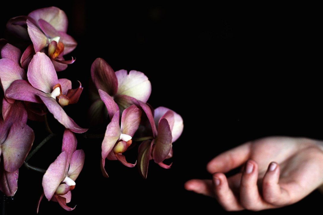 Irgendwann senkt das Mädchen seinen Blick und starrt hinab. Eines der Blütenblätter ist zu Boden gefallen und liegt neben seinen Schuhen. Das Mädchen hebt das Blütenblatt hoch und dreht zwischen den Fingern. Dann legt es das Blütenblatt in seinen Kopf, tief hinein.